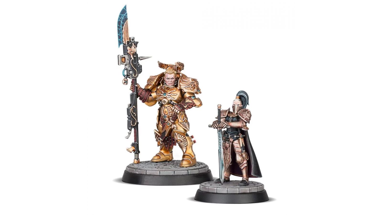 Directement tirées de la série romanesque des Gardiens du Trône par Chris Wraight, ces figurines stupéfiantes représentent les héroïques protagonistes, le Shield-Captain Valerian et la Knight-Centura Aleya. Ces figurines sont disponibles dans le cadre de la Black Library Celebration 2020.