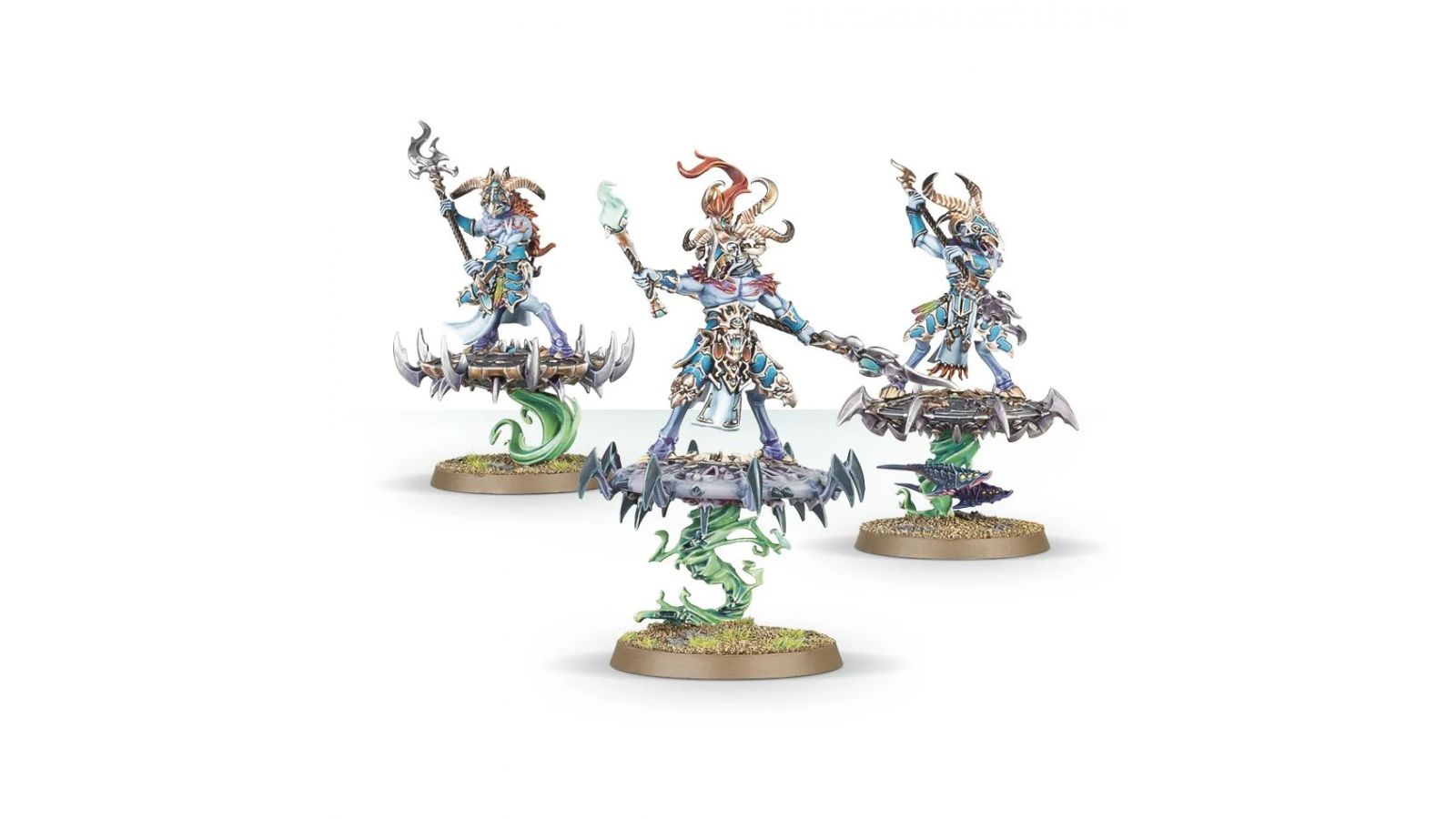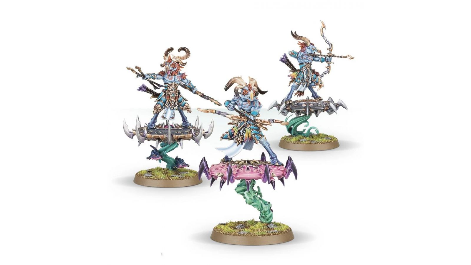 Ce kit est fourni avec 3 socles ronds Citadel de 40mm, et peut à la place servir à assembler 3 Tzaangor Skyfires.