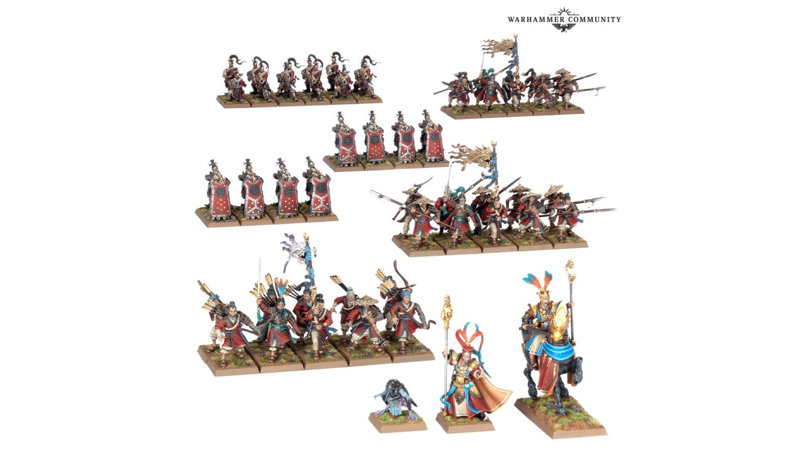 Pour les soutenir à distance, vous trouverez huit Équipes de Canon Grue et 12 Fusiliers Grêle de Fer. Les premières excellent dans l’élimination de cibles à des portées extrêmes tandis que leurs pavois les protégeront des tirs de réplique. Les Fusiliers Grêle de Fer, quant à eux, préfèrent agir d’un peu plus près, là où leurs violents tromblons pourront cribler les rangs des guerriers adverses.