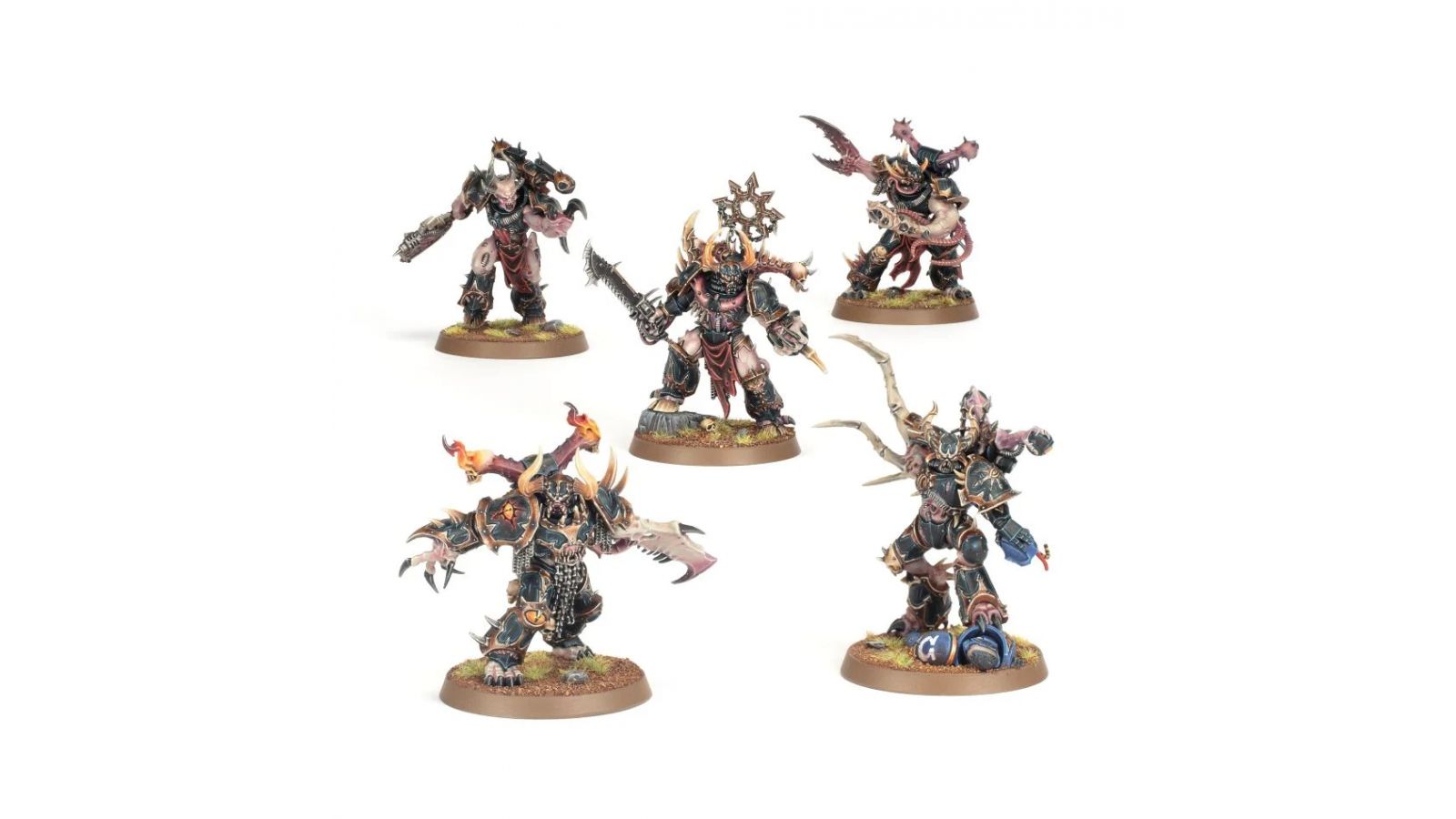 Ce kit plastique permet d'assembler cinq Possédés, de monstrueux combattants de mêlée arborant une répugnante variété de mutations, des griffes et des tentacules aux membres remplacés par des lames. Chaque figurine s'accompagne d'un grand choix d'éléments esthétiques, dont des têtes alternatives, des membres démoniaques, des paquetages dorsaux interchangeables et d'autres accessoires. Cela vous permet de ne pas avoir deux figurines identiques, même au sein de grosses unités ou parmi plusieurs escouades de ces monstres à moitié démoniaques. Le kit propose également une icône du Chaos en option permettant à un Champion Possédé d'invoquer la bénédiction des Puissances de la Ruine.
