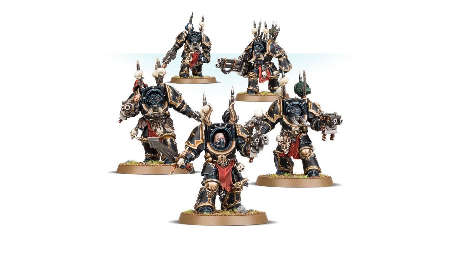 Les Chaos Terminators sont d'excellents combattants à tout faire. Outre la résistance accrue que leur confère l'armure Terminator par rapport à d'autres unités Chaos Space Marines, ils se distinguent nettement sur le champ de bataille par leur stature et leur râtelier à trophées macabres.