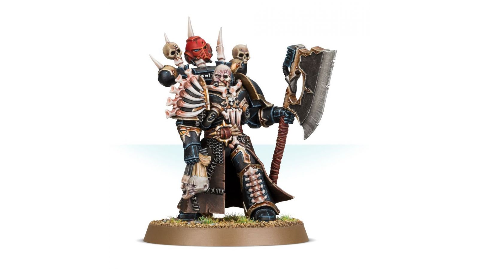 Le Master of Executions est un kit plastique de choix QG pour armée de Chaos Space Marines, dont l'unique vocation est d'éliminer les personnages ennemis avec sa redoutable (et énorme) hache de démembrement. La figurine arbore tous les attributs sinistres d'un bourreau, avec un râtelier à trophées, une armure couverte de décorations en os, et deux têtes fraîchement coupées qu'il tient de la main droite.