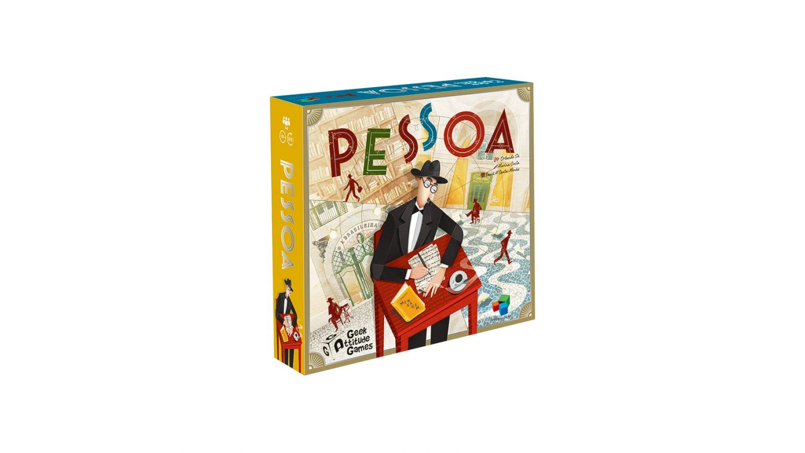 Pessoa est un jeu de placement d’ouvriers dans lequel chaque joueur interprète un des plus célèbres hétéronymes de l’écrivain : Alberto Caeiro, Ricardo Reis, Álvaro de Campos ou Bernardo Soares. Vous devrez vous déplacer entre l'espace métaphysique de la tête de Pessoa et les espaces physiques de Lisbonne pour vous inspirer des cafés emblématiques, visiter les librairies pour enrichir votre bibliothèque et vos connaissances, et chercher l'inspiration pour écrire des poèmes, marquant ainsi des points de victoire.