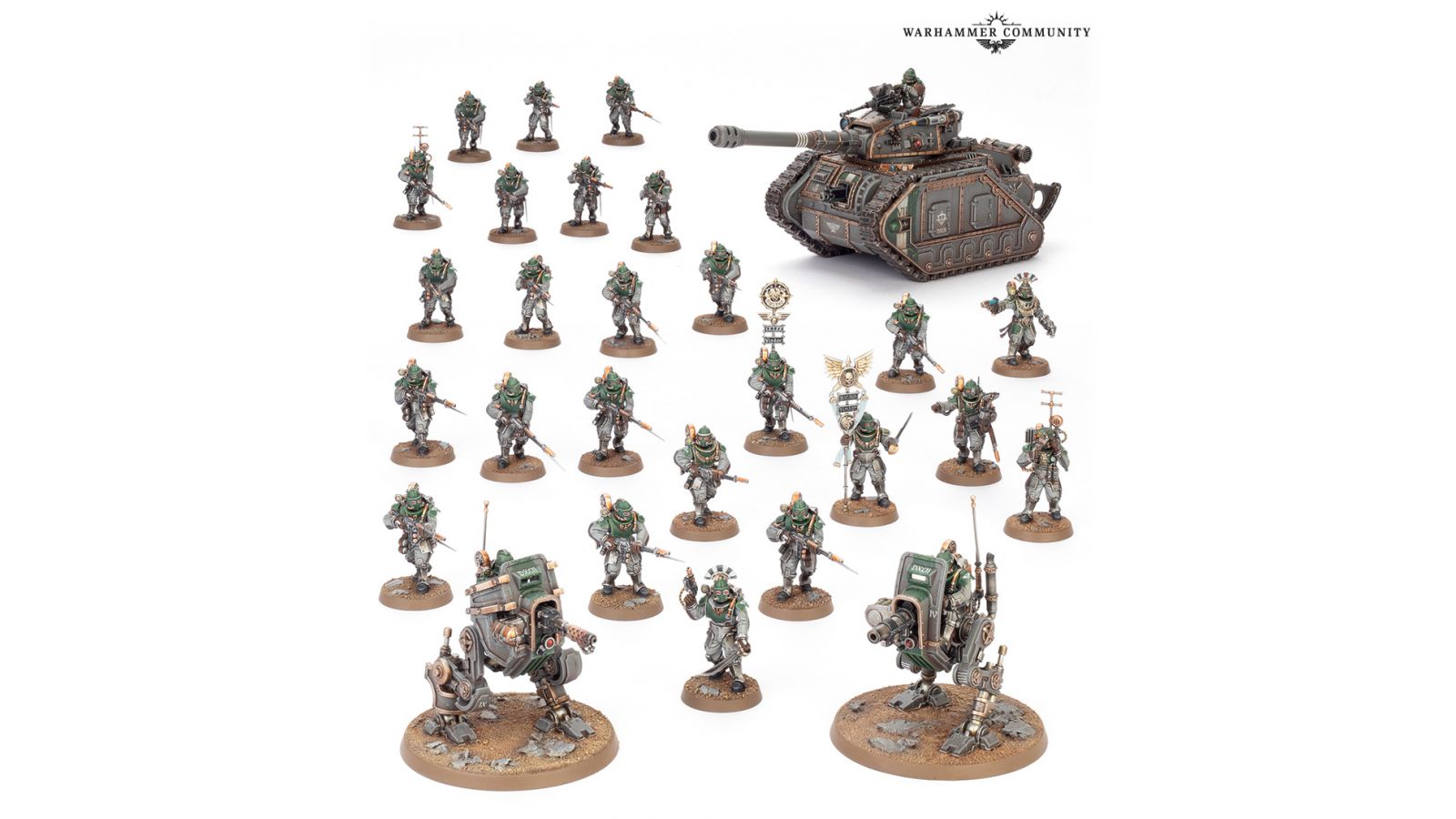 Montrez à ces Space Marines la puissance des soldats de l’Humanité avec la Force de Combat des Solar Auxilia, qui rassemble une Section de Ryfliers complète de 20 figurines, ainsi qu’une Section d’État-major Tactique de cinq figurines, qui peut à la place être assemblée soit comme Section d’État-major de Ligne moins gradée, soit comme un Maréchal Légat et sa garde personnelle de quatre Protecteurs, avec tout un tas d’armes et d’accessoires pour personnaliser votre officier. Deux Sentinelles Hermes peuvent être assemblées dans leurs variantes Légère ou Veletaris, avec un multi-laser ou un lance-grenades pour la première et un lance-flammes lourd ou une arquebuse volkite pour la deuxième. Enfin, un Leman Russ des Solar Auxilia fournit un soutien blindé lourd avec au choix un obusier avec autocanon coaxial, un canon laser ou un autocanon jumelés, ou un obusier Vanquisher à canon long avec autocanon coaxial en tourelle, et une arme de coque parmi cinq au choix.