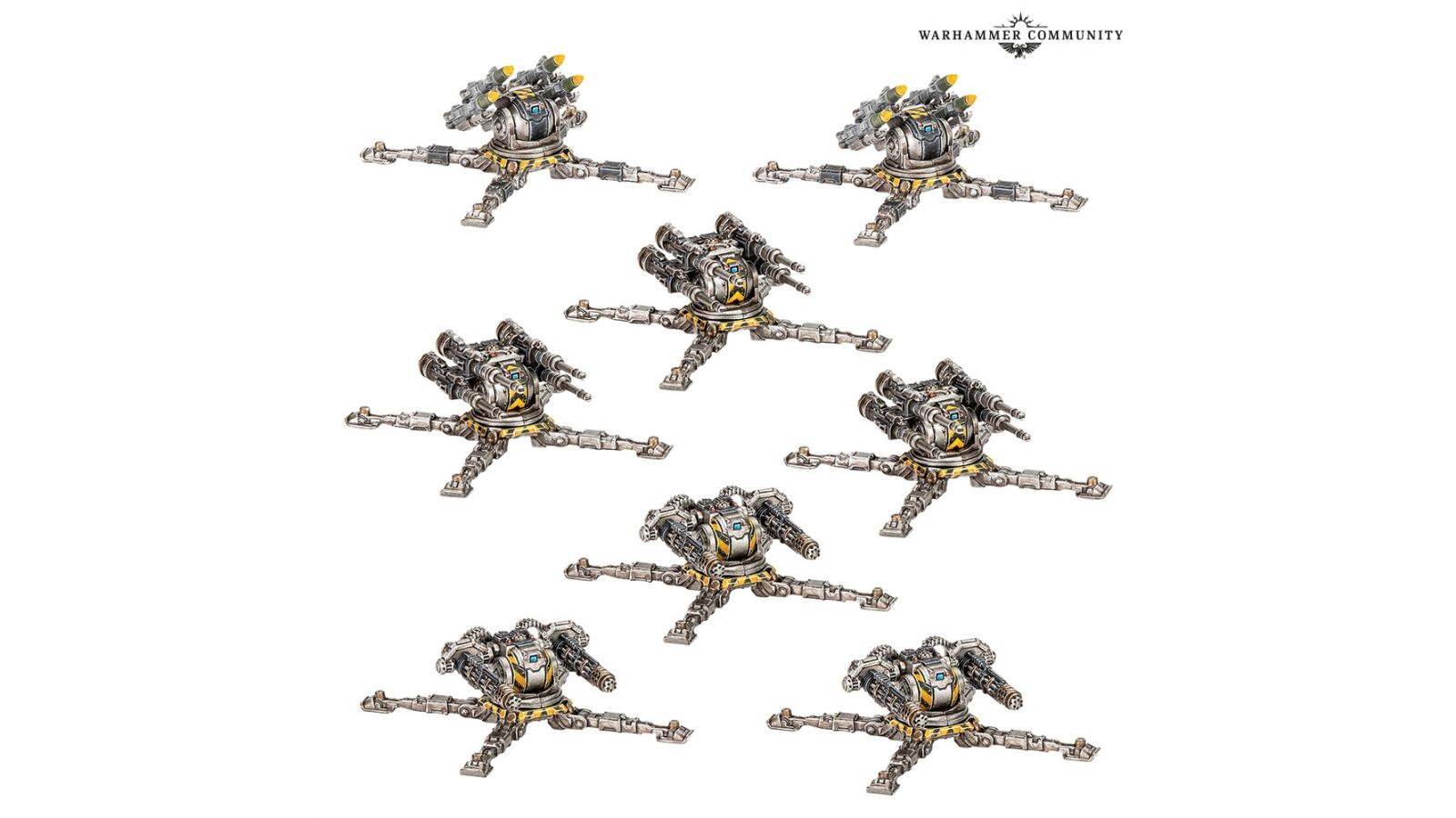 Tout le monde devrait avoir la possibilité de défendre son territoire, et c’est quand même plus facile quand on dispose de Plateformes Araknae pour couvrir nos arrières. Ce nouveau kit de 8 Araknae Platforms propose diverses options d’armes – dont certaines font leur toute première apparition – ce qui vous permet d’assembler vos plateformes avec des autocanons accélérateurs quadritubes, d’en assembler jusqu’à quatre avec des canons Punisher jumelés, et d’en assembler jusqu’à deux avec des batteries de missiles Frag lourds Orias.