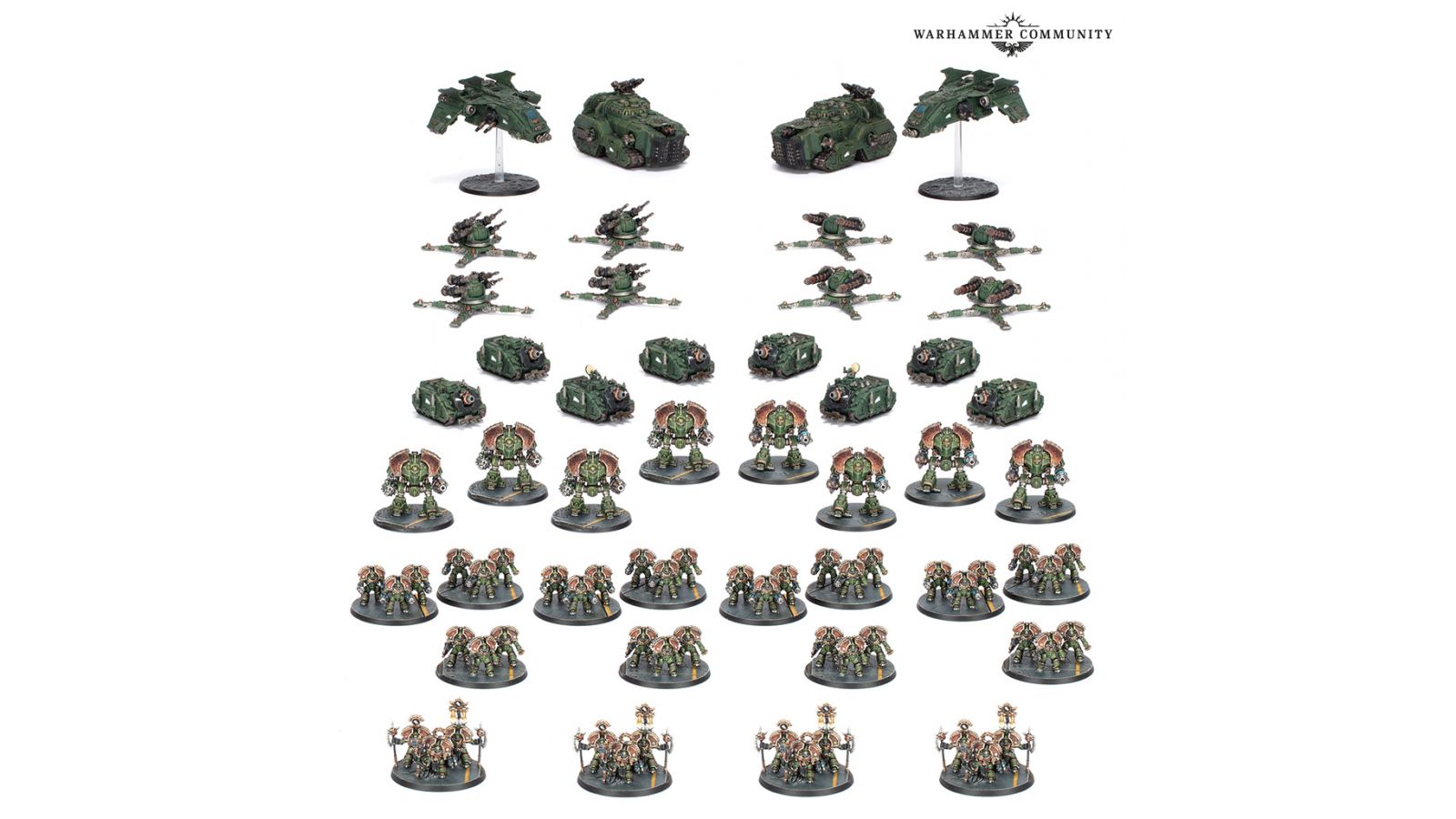La boîte Saturnine Battle Group est le symbole ultime de la domination des Legiones Astartes, avec pas moins de 8 Saturnine Dreadnoughts, 12 socles de Saturnine Terminators, 4 socles de Saturnine Terminator Command Squads, 8 Araknae platforms, 8 Vindicator Tanks, 2 Mastodon Super-heavy Assault Transports, et 2 Fire Raptor Gunships. Essayez un peu de passer à travers ça, pour voir !