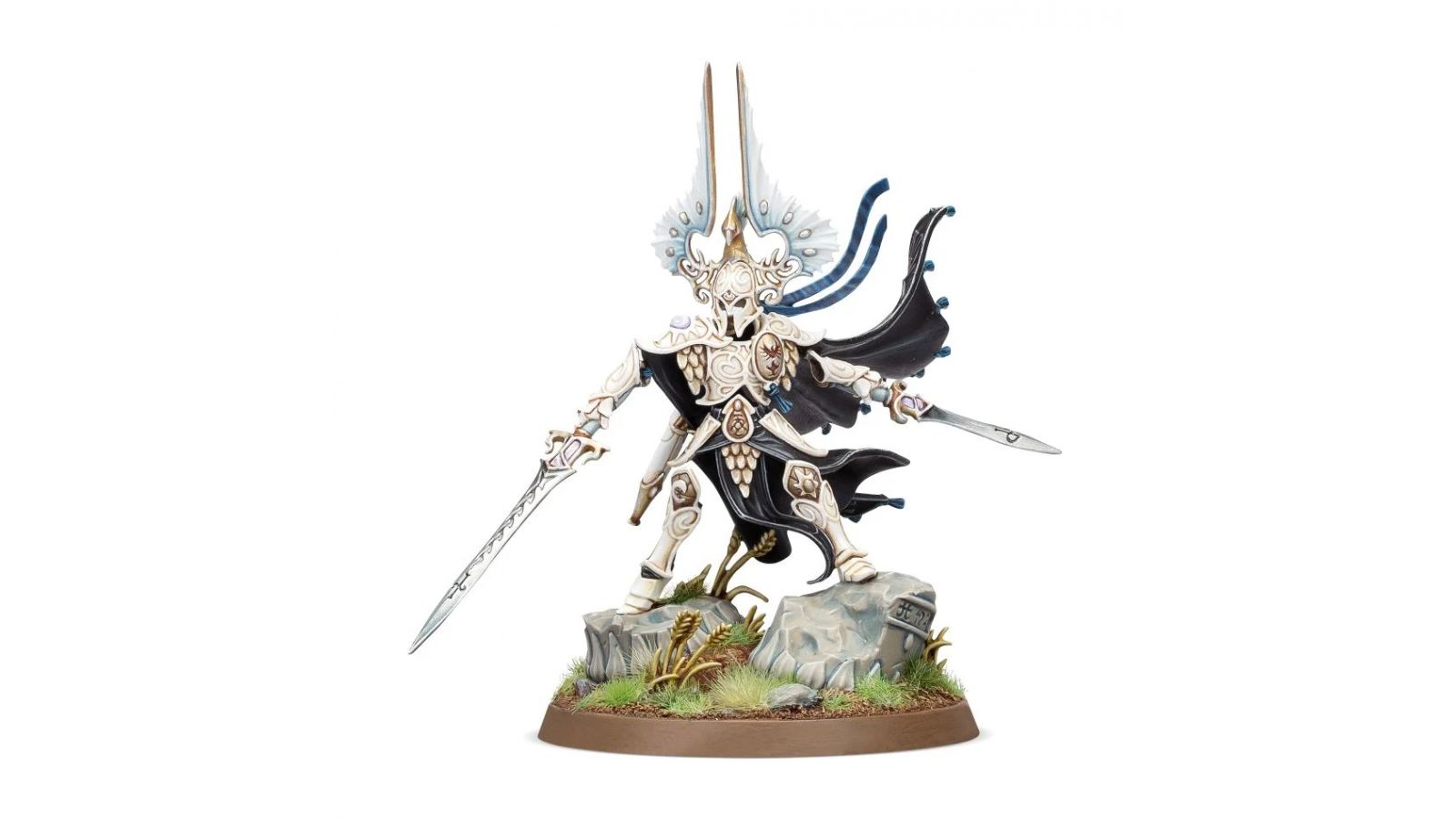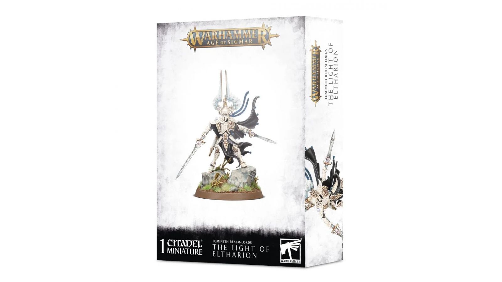Eltharion n'a pas de forme physique, il n'est qu'essence spirituelle investie d'une force inouïe par la magie de Teclis. Esprit ancestral de la lignée Lumineth, c'est un puissant guerrier vengeur doublé d'un héros qui inspire les Aelfs témoins de sa lumière radieuse.