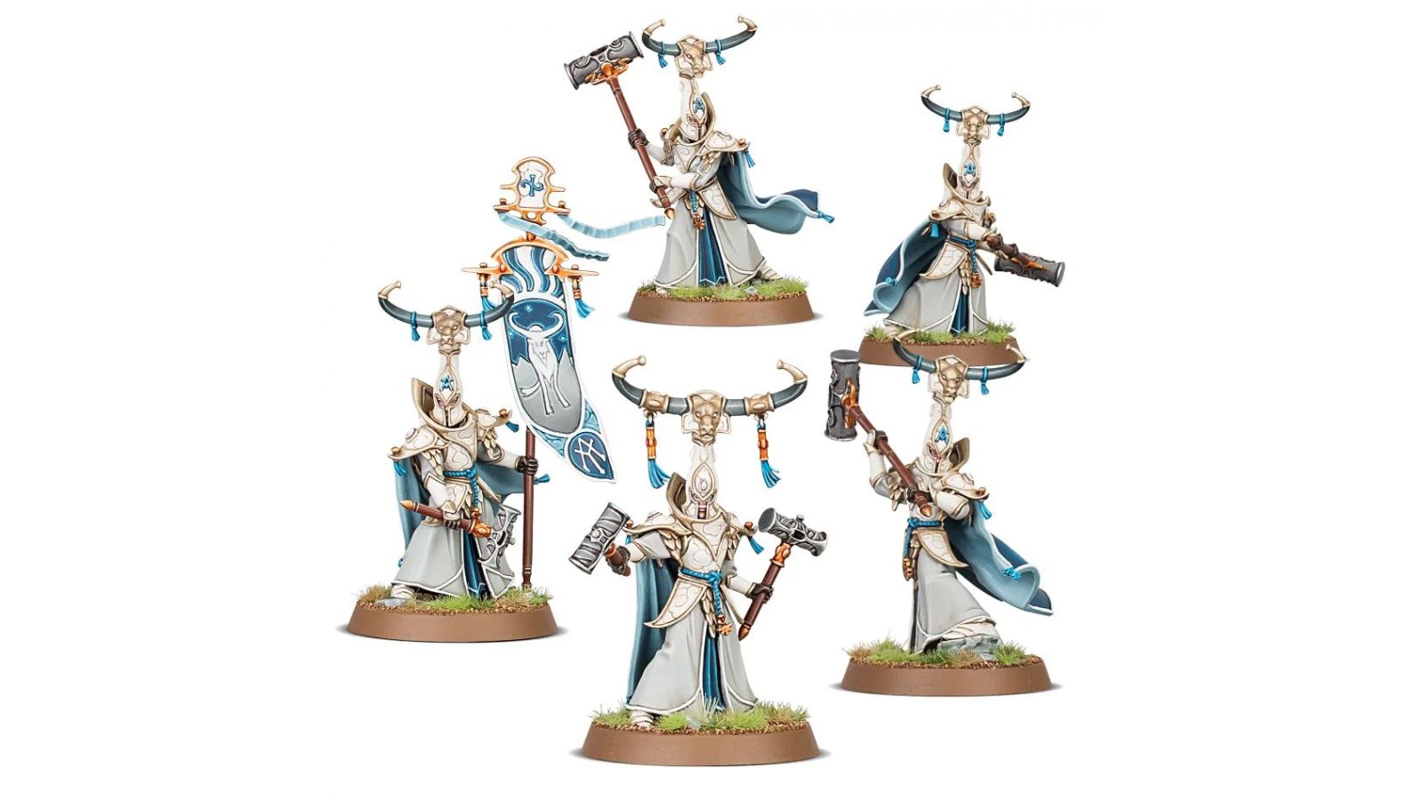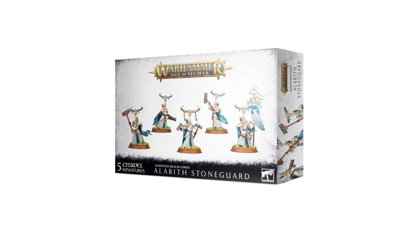 Ce kit permet d'assembler 5 Alarith Stoneguards, les options pour monter un porte-étendard et un Truestone Seneschal. Chaque Alarith Stoneguard peut être armé au choix d'un maillet de pierre ou d'un pic de diamant, tandis que le Truestone Seneschal peut manier une paire de marteaux à strates. Le tout est fourni en 63 composants plastique, plus 5 socles ronds de 32mm.