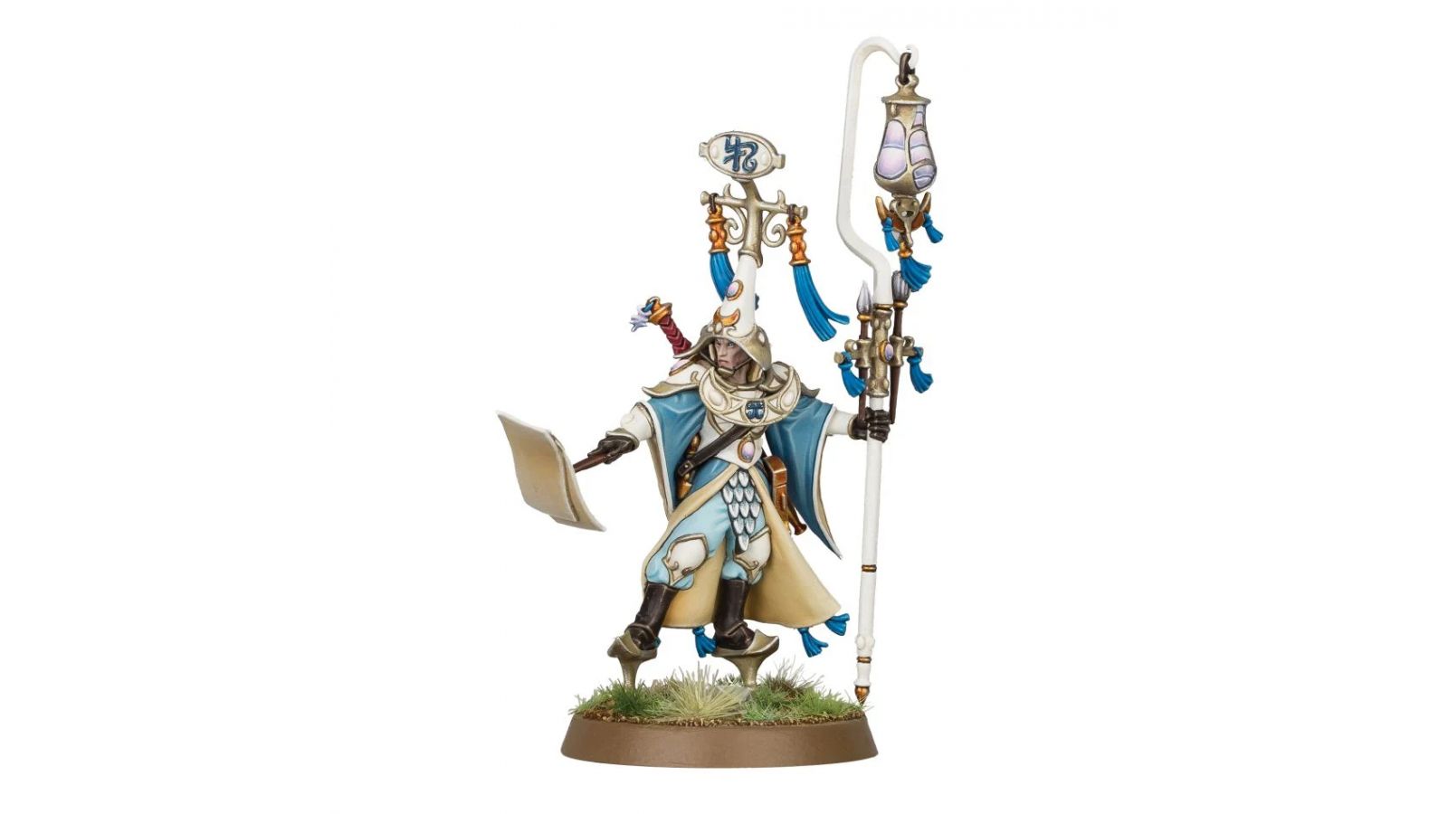 Portés par leurs longues chausses daethar au dessus du sol qu'ils manipulent, les Calligraves sont d'excellents mages de soutien qui peuvent renforcer leurs alliés et également s'en prendre à l'ennemi. Leur épée n'est pas un simple ornement, car ces spécialistes des arcanes peuvent en un instant s'avérer tout aussi capables que n'importe quel héros Lumineth de riposter par le fer.