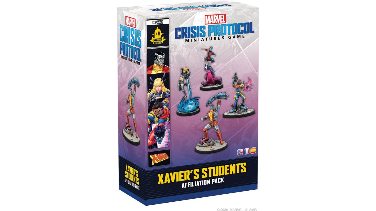 Ce set pour Marvel : Crisis Protocol™ contient des figurines, des cartes Statistiques et des cartes Tactique d’Équipe pour Diablo, Colossus, Bishop et Magik, 4 élèves du Professeur Xavier. Ils seront des renforts de choix pour une équipe de X-Men.