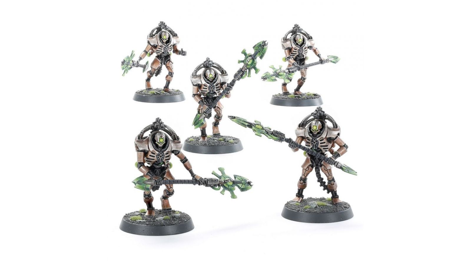 Ces figurines détaillées portent la riche iconographie et les glyphes des dynasties, sur une armure évoquant à la fois la silhouette squelettique nécron et la majesté de plaques métalliques segmentées. Ils manient de terrifiantes crosses d’alliance, symboles de leur rôle, ou troquent celles-ci pour une combinaison mortelle de lame du néant et de projecteur de particules.