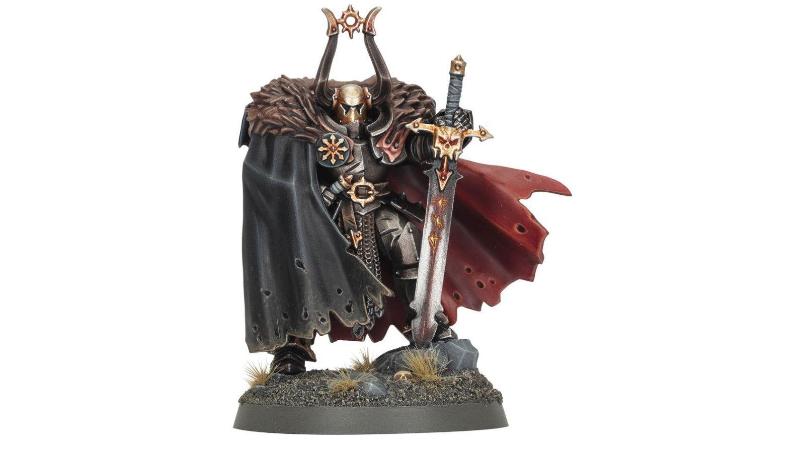 Célébrez le Warhammer Day 2025 avec Urkhan, le Gardien Obscur, un Guerrier du Chaos menaçant pour mener vos armées d'Esclaves des Ténèbres dans les parties de Warhammer Age of Sigmar. En tant que Héros Exalté du Chaos, il excelle à abattre les monstres les plus imposants ou les chefs ennemis. Se dressant dans une pose orgueilleuse avec sa cape flottant au vent et sa lourde épée fermement plantée au sol, ce guerrier constitue un excellent projet de peinture. Urkhan est fourni avec un choix de deux têtes: une tête casquée avec de longues cornes incurvées et une tête nue avec un haut cimier et une étoile du Chaos gravée dans sa chair.