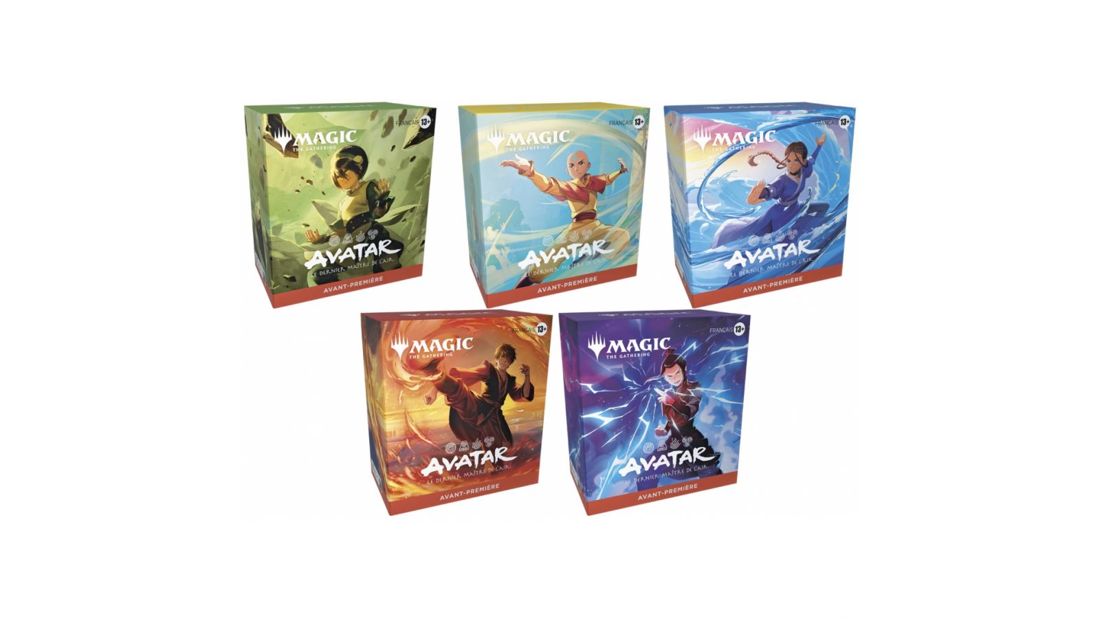 L’Avant-première permet à vos joueurs de découvrir pour la première fois l’histoire et la stratégie propres à Magic: The Gathering | Avatar, le dernier maître de l'air. Chaque pack d'avant-première invite les joueurs à venir prêter main-forte à Aang, Katara, Zuko, Toph ou Azula, et à explorer leur personnalité élémentaire via l'expérience de jeu Magic. Avec un booster préconçu pour chaque personnage, les joueurs pourront construire leur deck et démarrer leur quête en vue de maîtriser les éléments.
