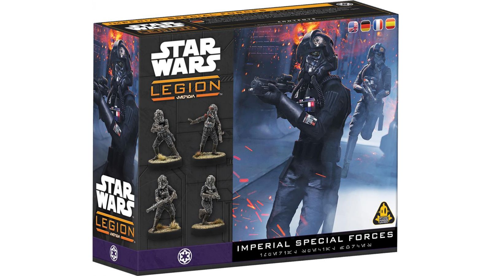 Les Forces Spéciales Impériales sont envoyées en première ligne lorsque l’Empire souhaite effectuer des missions d’infiltration, d’extraction ou d’assaut. Sortant des rangs des troupes standards, les membres des Forces Spéciales Impériales ont prouvé leur efficacité au combat à maintes reprises. Cette extension vous permettra d’ajouter 7 figurines à votre armée de l’Empire Galactique, afin de constituer une unité des Forces Spéciales Impériales ou de l’Escouade Inferno. Les figurines de Gideon Hask et Del Meeko peuvent être montées avec ou sans leurs casques.