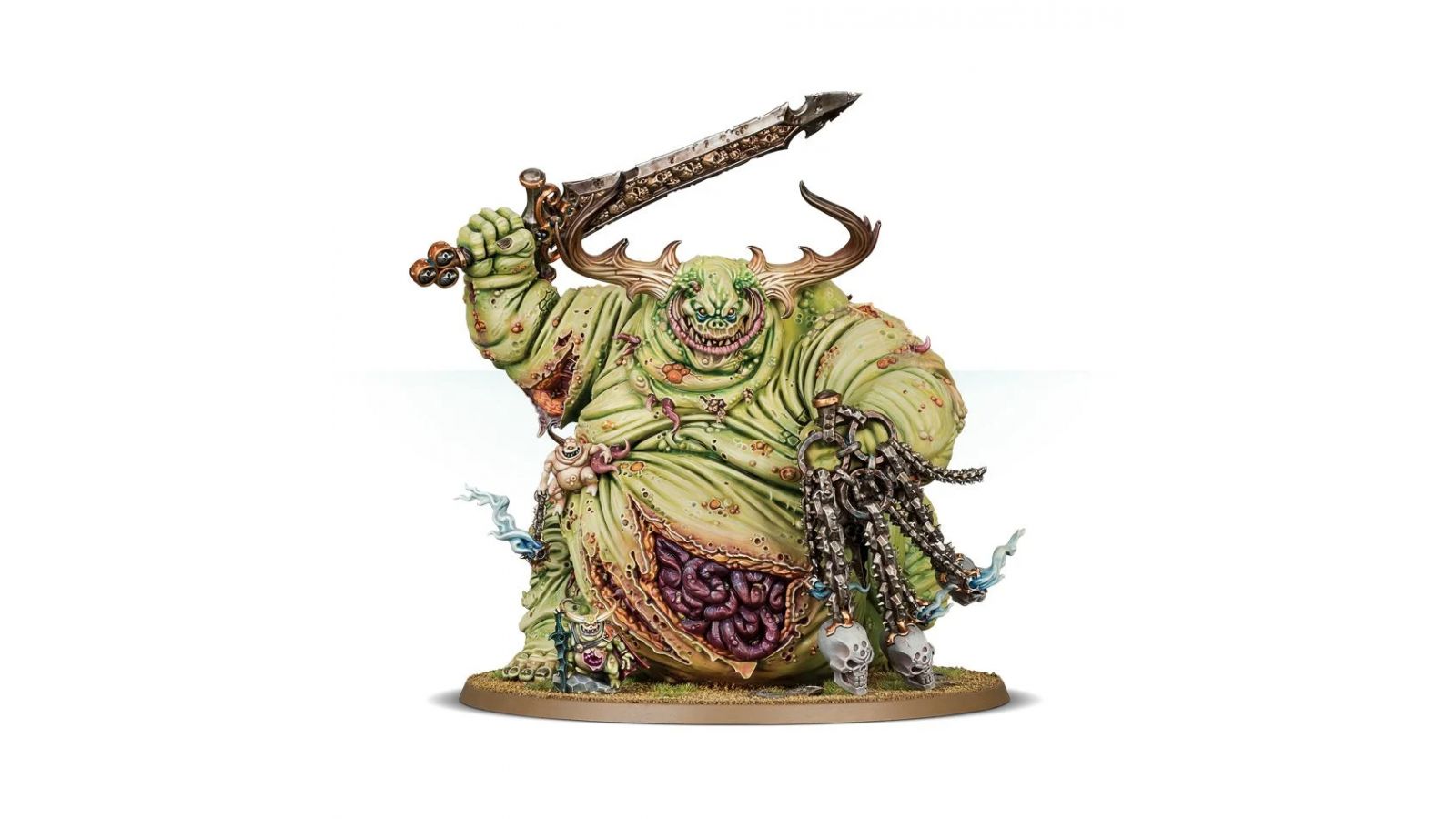 Les Great Unclean Ones sont les plus puissants démons de Nurgle. Ils surplombent leurs ennemis, car ce sont des montagnes de chair avariée qui parcourent le champ de bataille en brandissant des armes colossales et rouillées, en vomissant des jets d’immondices et en déchaînant des sorts écœurants. Une fois courroucés, les Great Unclean Ones sont terrifiants, défonçant les rangs adverses, broyant leurs ennemis et balayant les rescapés avec d'énormes épées et fléaux. Certains sonnent de leur cloche pour invoquer de nouveaux démons, d'autres déclenchent de terribles épidémies de peste magique.