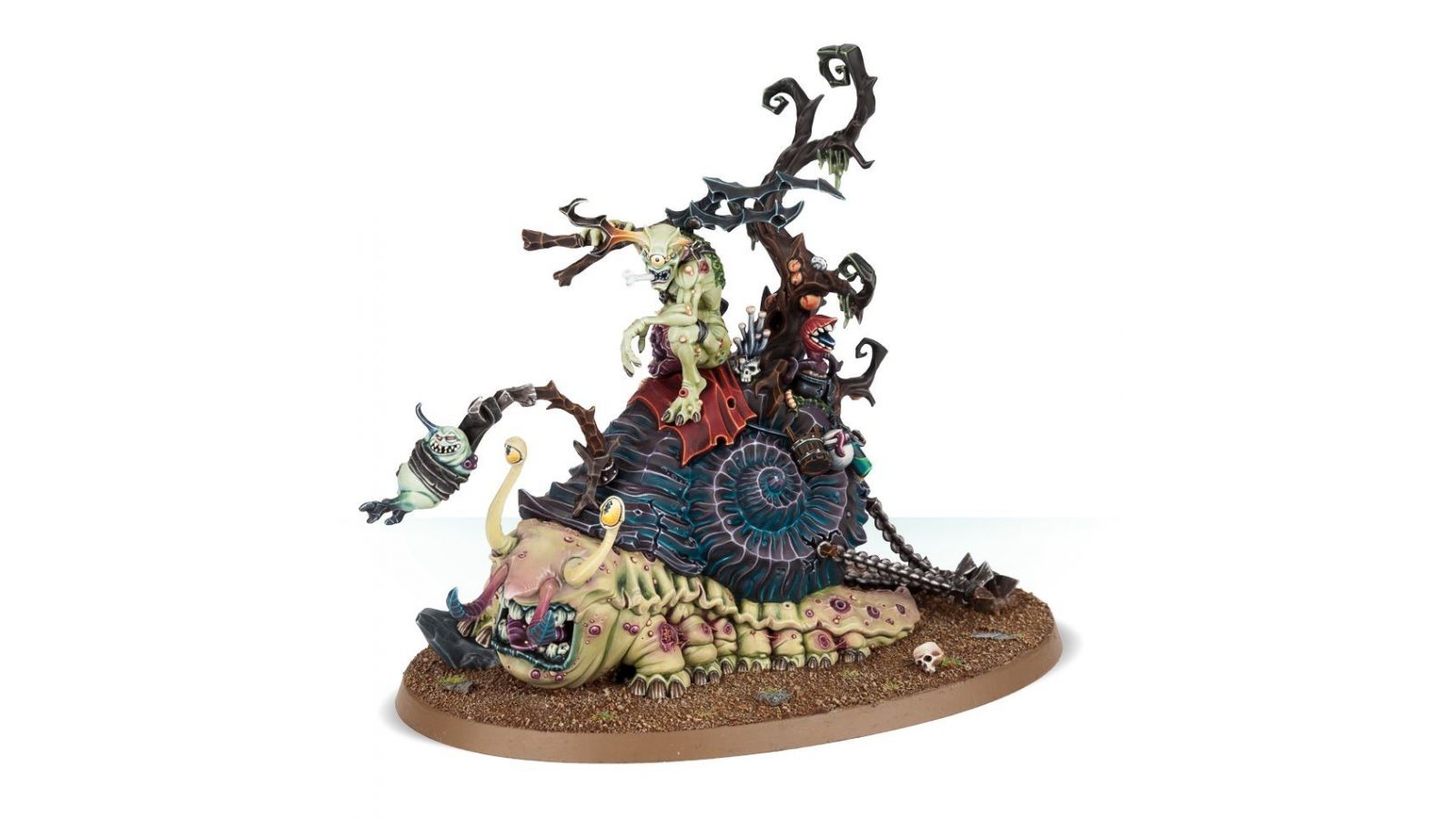 Desséché et ridé comme une pomme restée trop longtemps au soleil, Horticulous est un être dénué de sens de l’humour, qui considère le jardinage et la guerre avec le même pragmatisme. Juché sur un énorme mollusque baptisé affectueusement Mulch, le Jardinier de Nurgle passe son temps à labourer les domaines de Nurgle avec sa charrue pour en fertiliser le sol, tout en observant d’un oeil expert la flore repoussante qui prospère autour de lui. Au combat, Horticulous invoque le pouvoir du jardin de Nurgle pour le matérialiser et recouvrir les sites magiques sous sa luxuriance illimitée.
