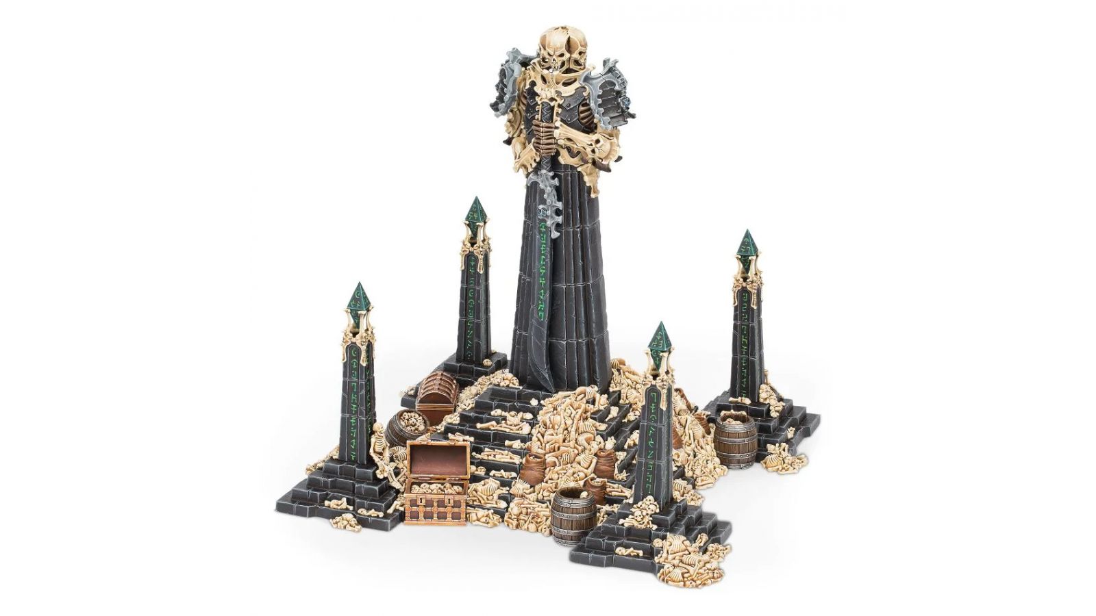 Cet élément de terrain balaie le champ de bataille de son regard mortel pour punir ceux qui défient la volonté de Nagash. Choisissez la sentence à exécuter sur vos ennemis – le Châtiment d’Angoisse, de Mort, d'Ignorance ou de Léthargie. À l'avenir on ne les reprendra plus à manquer leurs versements.