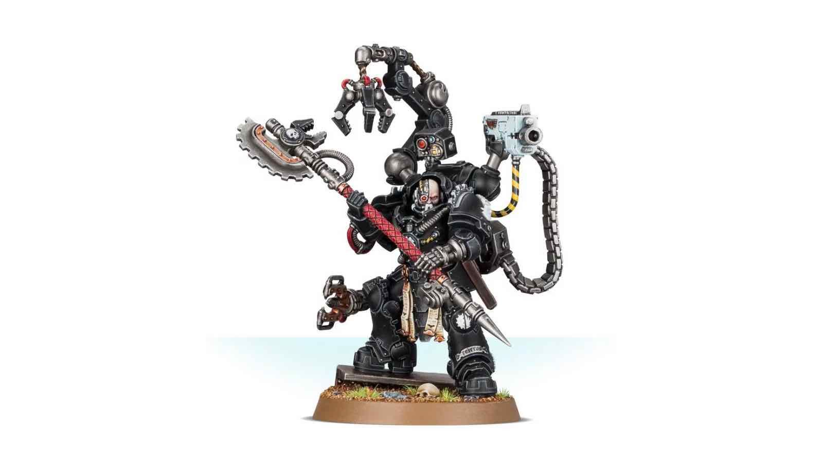 Armé de l'unique Ire de la Gorgone, l'Iron Father Feirros peut faucher l'ennemi de loin, et il peut le tailler en pièces au corps à corps avec la redoutable Hersemain. Feirros est une pièce centrale de choix pour votre armée d'Iron Hands, bardé comme il l'est de bioniques de maître très prisés des fils de Medusa.