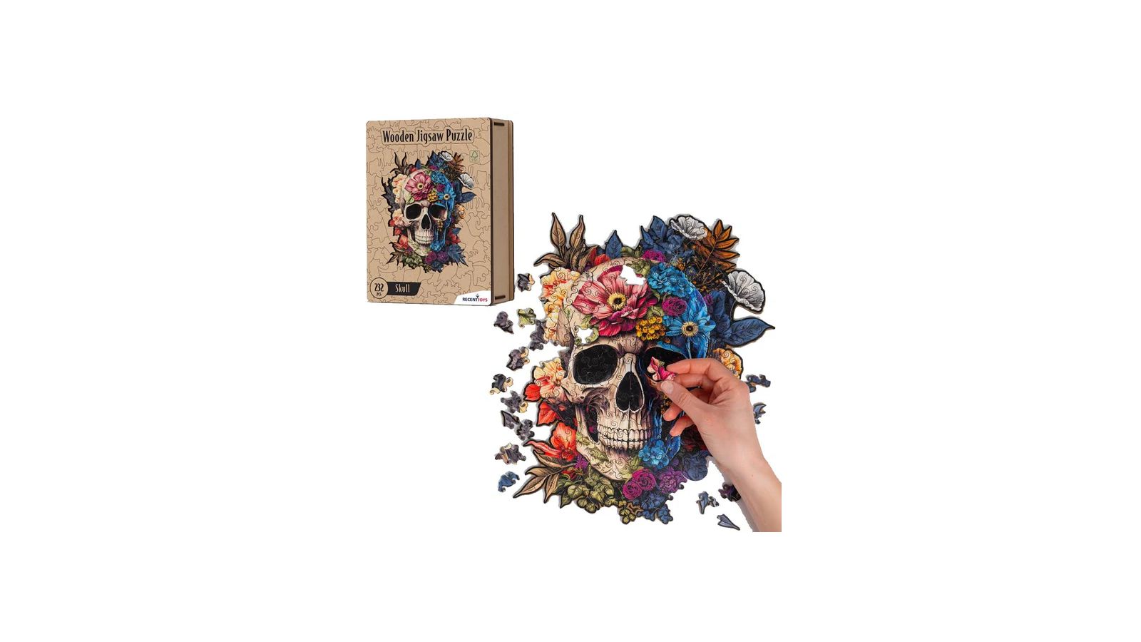 Plongez dans l’univers captivant de ce puzzle en bois de 232 pièces représentant un crâne stylisé aux détails minutieux. Chaque pièce, finement découpée, s’assemble avec précision pour révéler une œuvre intrigante et pleine de caractère.