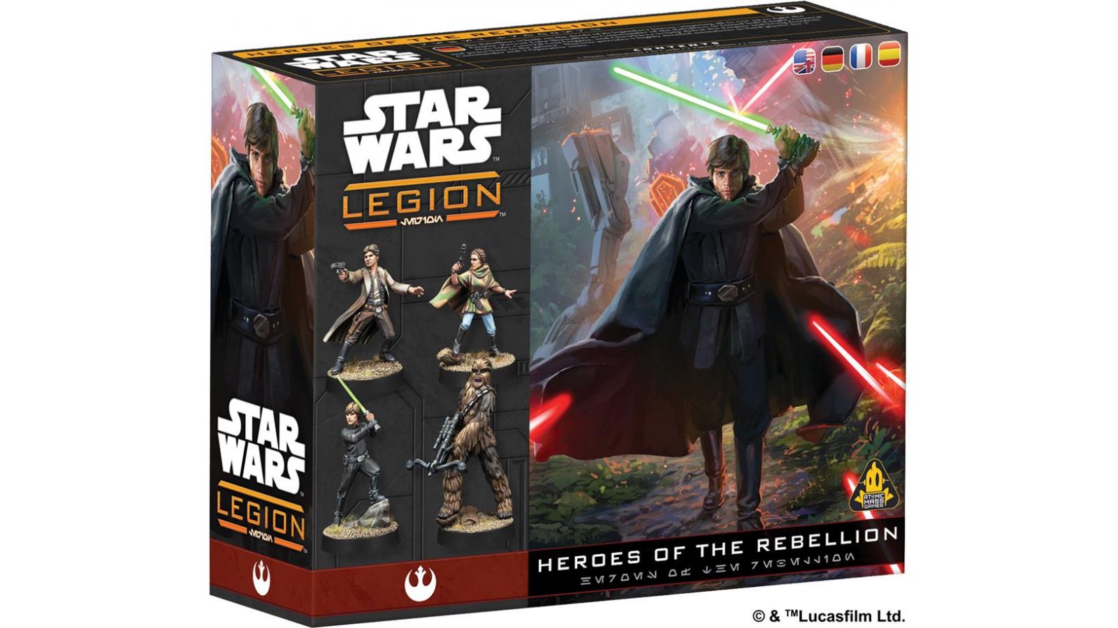 La Rébellion peut compter sur les exploits de ses héros légendaires, afin d’inspirer ceux qui souhaitent se soulever contre l’Empire. Recrutez Luke Skywalker en tant que Héros de la Rébellion ou comme Chevalier Jedi de renom, et ajoutez à votre armée les Généraux Han Solo et Leia Organa, sans oublier le farouche Chewbacca. Ils vous aideront à vaincre l’Empire et à ramener la paix dans la galaxie. Cette boîte contient 5 figurines finement sculptées en plastique dur, afin de constituer 3 unités de Commandant et 2 unités d’Agent.