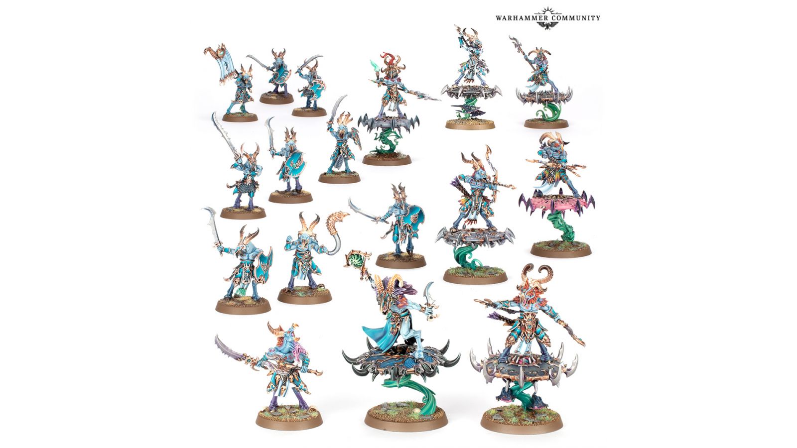 Ces unités constituent également un excellent moyen d’agrandir une armée des Disciples de Tzeentch, avec des options d’unités supplémentaires si vous ne comptez pas les employer dans les parties de Fer de Lance. Les Tzaangors Éclairés et Flambeciel sont complètement interchangeables et peuvent être assemblés en une seule et même unité si vous le désirez, tandis que les Tzaangors peuvent être armés soit d’une épée et d’un bouclier, soit d’une paire de lames, et jusqu’à quatre d’entre eux ont la possibilité de porter une arme à deux mains à la place.*