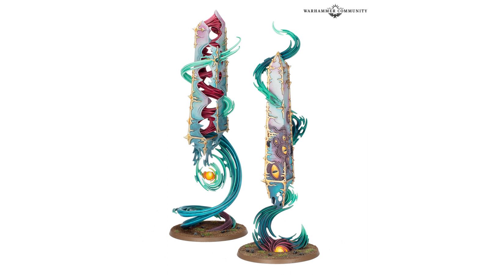 Répandez les pouvoirs corrupteurs du changement sur le champ de bataille avec une paire d’Éclats d’Argent dévoyés – les fragments jumeaux de cristal sorcier extraits des entrailles d’une Tour d’Argent, et nimbés de la magie de Tzeentch. Tous les sorciers amis qui traînent à proximité voient leur énergie magique décupler, ce qui alimente des sorts toujours plus spectaculaires.