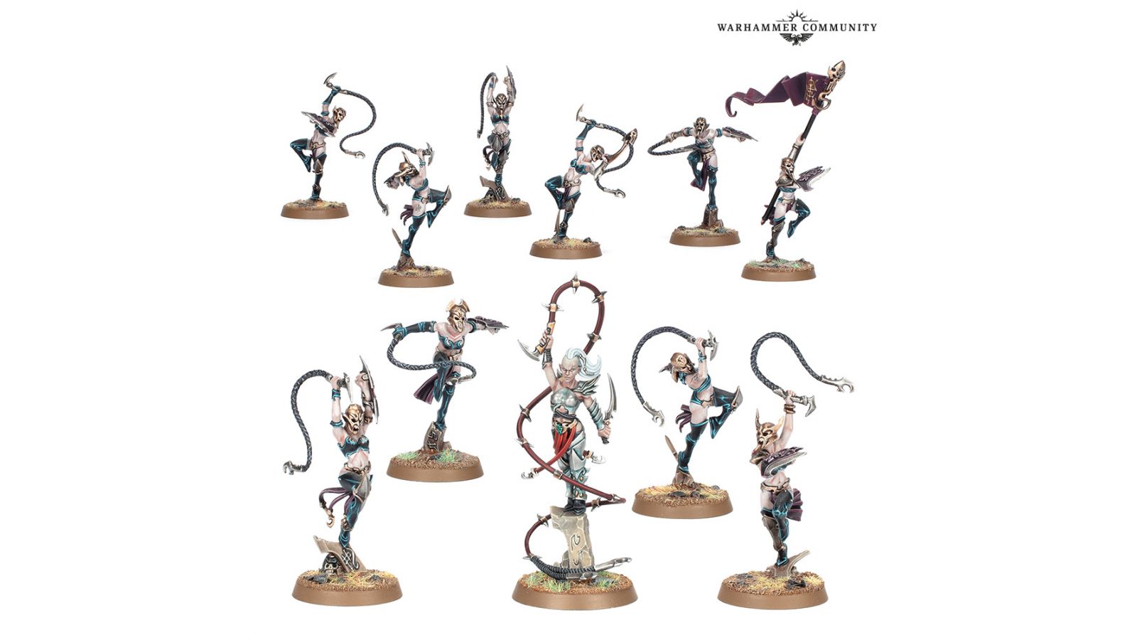 On trouve dans la plupart des cités de Sigmar des troupes de gladiatrices khainites, divertissant les foules par leurs démonstrations d’adresse martiale, et rejoignant souvent les armées de l’Ordre qui marchent au combat, contre la simple promesse d’un massacre à perpétrer. Le Régiment de Renom appelé Le Fouet Pourpre est une de ces bandes, constituée d’une Grande Gladiatrice menant 10 Sœurs du Massacre. Ces unités peuvent être utilisées comme Régiment de Renom dans la plupart des armées de la Grande Alliance de l’Ordre, ou de manière séparée au sein d’une armée des Filles de Khaine.