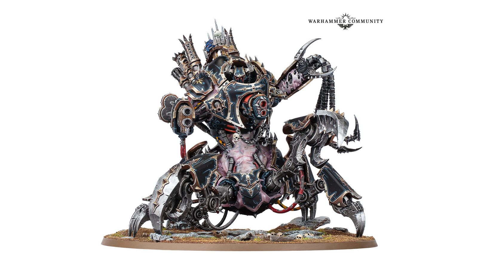 Le Profanateur dispose d’assez d’options d’assemblage pour impressionner les Techmanciens les plus blasés. Il propose deux options de position de torse, trois options de carapace, deux plaques pectorales interchangeables, quatre têtes de Space Marines du Chaos classiques, ainsi qu’une tête pour chacune des légions que sont les Iron Warriors, les Word Bearers, les World Eaters, les Thousand Sons, les Emperor’s Children et la Death Guard, et deux options pour chacune des épaules. Cela signifie que tous vos redoutables marcheurs seront uniques.