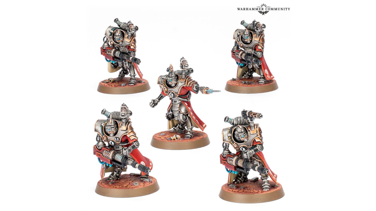 Les Hastarii en armure lourde sont optimisés pour fournir un appui feu et sont équipés d’armes bien plus lourdes que leurs pairs Skitarii pour pouvoir faire pleuvoir la mort partout où c’est nécessaire. Ce kit permet d’assembler une unité parmi deux au choix : des Exterminateurs Hastarii armés de projecteurs d'éradication à courte portée, ou des Fusiliers Hastarii dotés d’arquebuses à neutrons redoutablement précises.