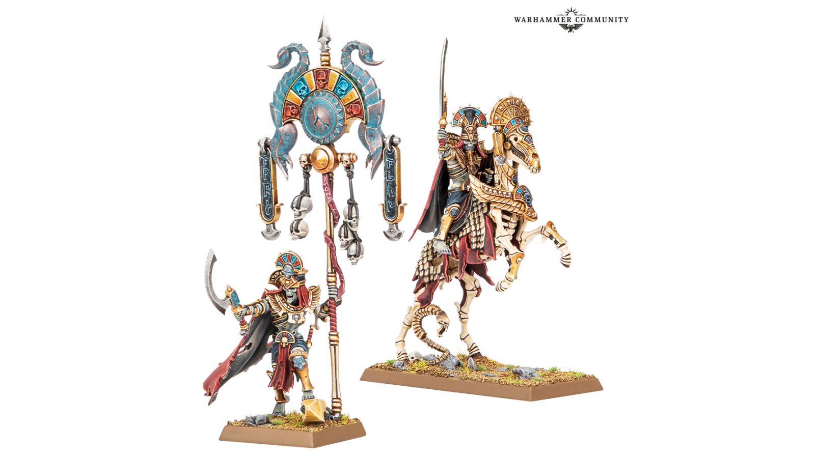 Des princes aux rois, tous les souverains de Nehekhara cherchent à reconquérir leur gloire d’antan en marchant à la guerre avec leurs légions mortes-vivantes. Ils sont accompagnés d’un cortège de champions personnels et de gardes du corps, dont certains agissent en tant que hérauts brandissant à la bataille les emblèmes de leur suzerain.