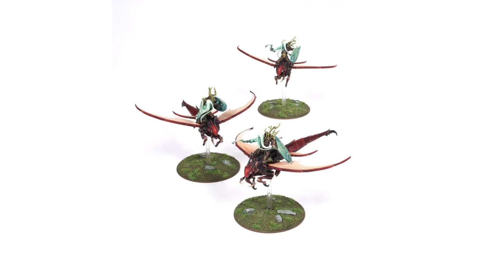 Ce kit plastique permet d'assembler trois Lanciers Coursefiel, des esprits sylvains montés sur des follets-dragons insectoïdes. Portant des heaumes cornus de chevaliers et de longues lances magiques, ces cavaliers d'élite peuvent franchir d'incroyables distances pour conduire une charge dévastatrice, et sont imprégnés d'une énergie vitale qui répare jusqu'aux blessures les plus sévères. Un Lancier Coursefiel peut être assemblé en leader d'unité appelé Scion Coursefiel, un autre en Porte-étendard, et un autre en Sonneur de Cor. Le kit inclut différents motifs de boucliers, de têtes, et plusieurs options d'assemblage pour chaque follet-dragon, ainsi qu'un choix de deux instruments pour le musicien, si bien que deux unités ne seront jamais identiques.