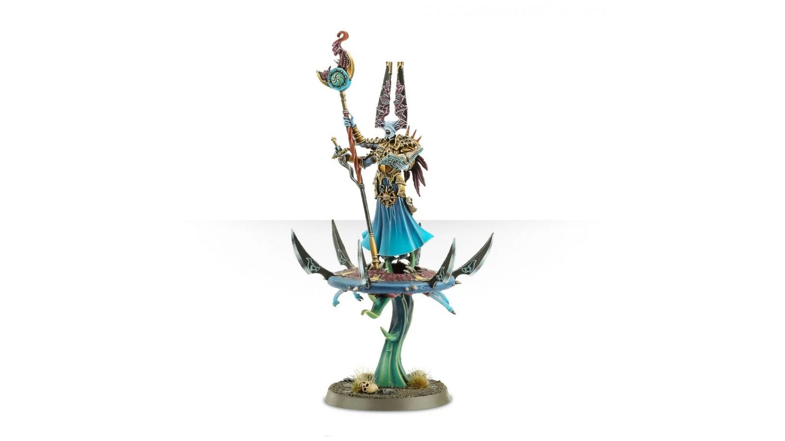 Ce kit plastique contient tout le nécessaire pour monter un sinistre Gaunt Summoner, chevauchant un Disc of Tzeentch. Armé d'un bâton du changement et d'une lame vilelangue, ce sujet détaillé flotte sur une vague de magie, retenu sur son Disc par des tentacules surnaturels, et il prononce les incantations de son grimoire et de son parchemin. Le Disc est fourni avec six lames. 18 pièces en tout, plus un socle rond Citadel de 40mm.