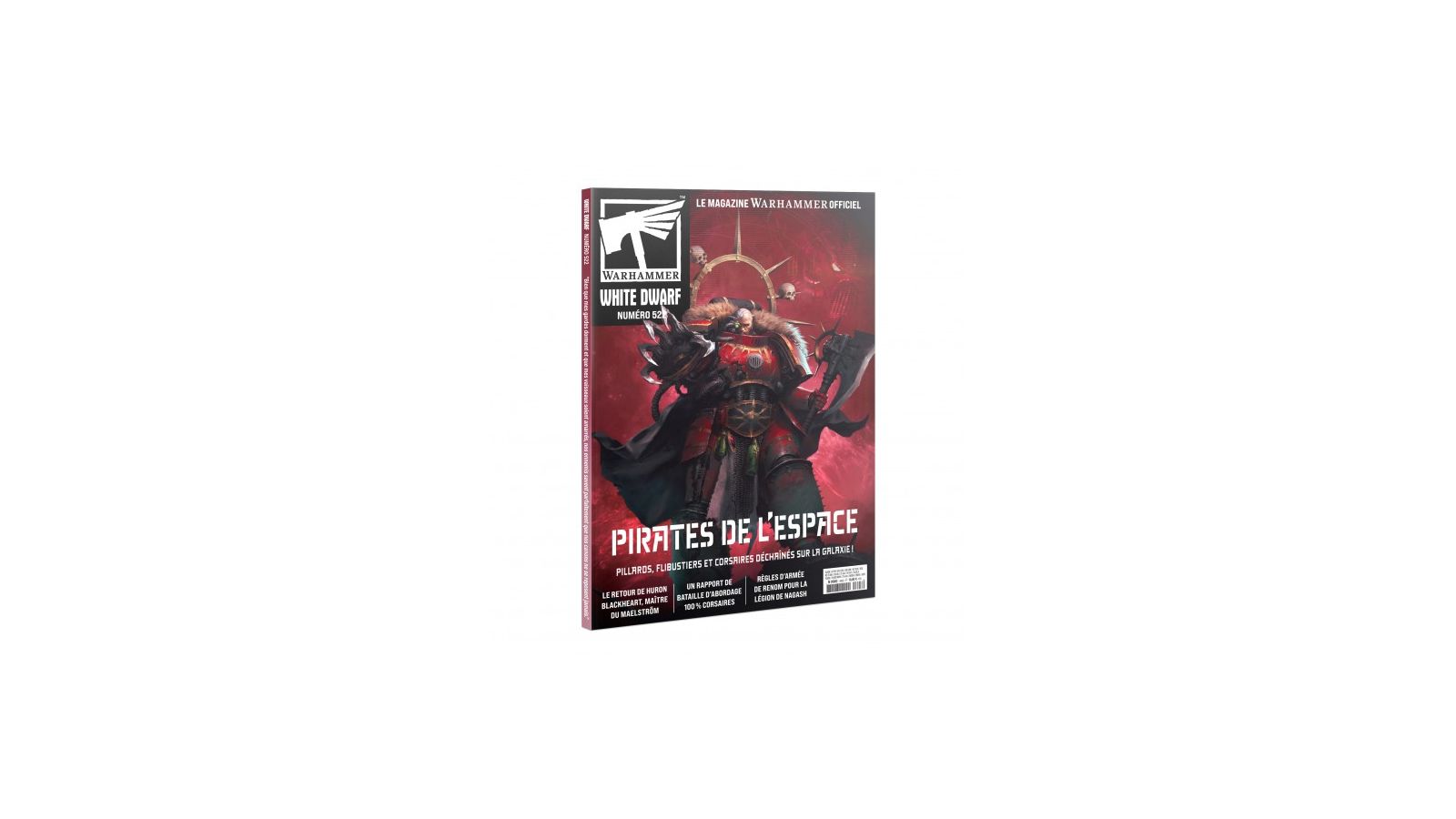 La couverture de ce numéro de White Dwarf – intitulé « Pirates de l’Espace » – laisse peu de place au doute : l’aventure va écumer les mers du néant ! Le numéro 522 met en lumière Huron Blackheart et sa bande de Red Corsairs, tout en proposant aux hobbyistes et joueurs une multitude de contenus inspirants et pratiques pour enrichir leurs parties.