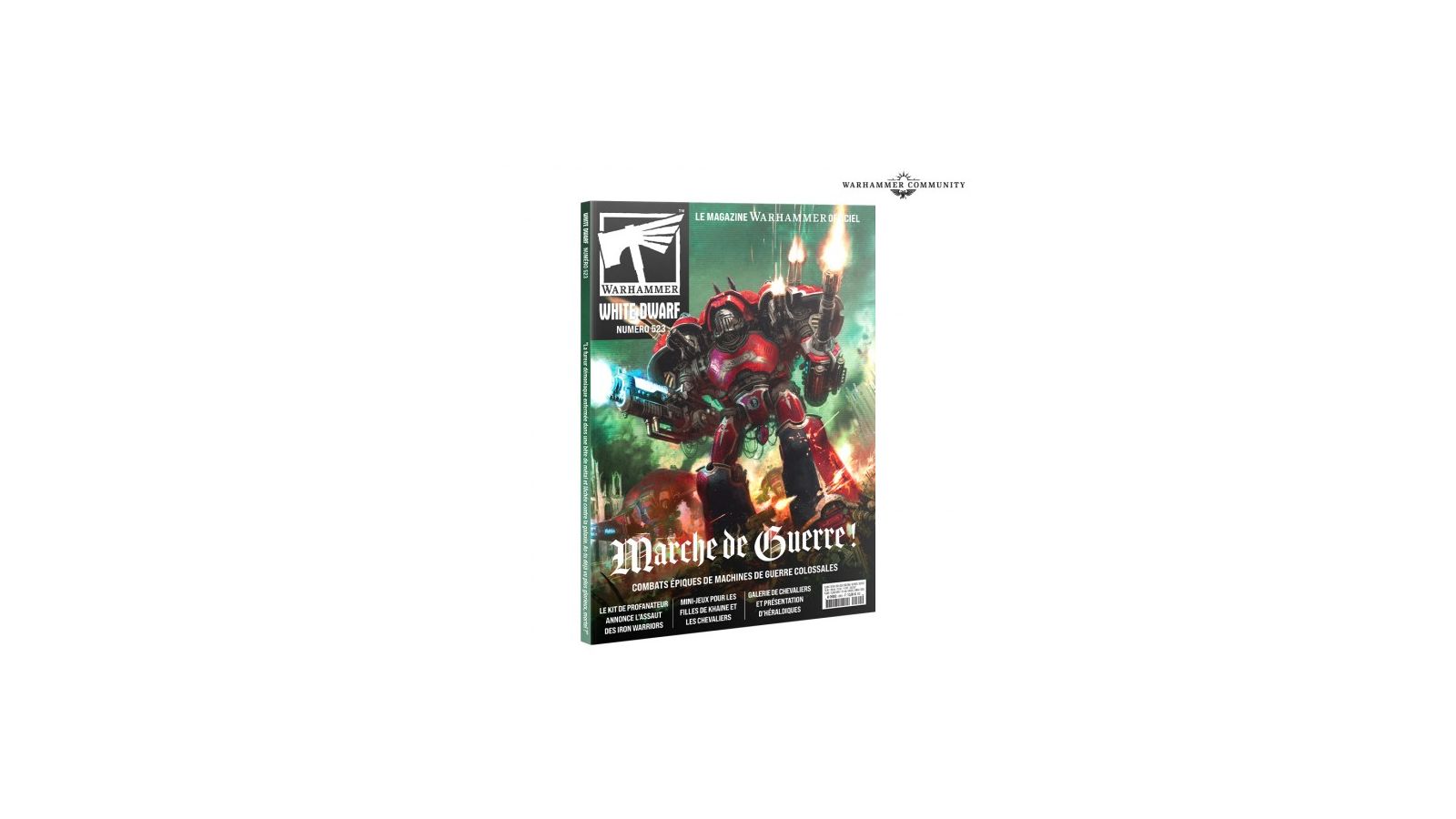 Le numéro d’avril de White Dwarf Magazine April Issue met en avant les gigantesques machines de guerre de l’univers de Warhammer 40,000 : les Chevaliers Impériaux et les Chevaliers du Chaos.